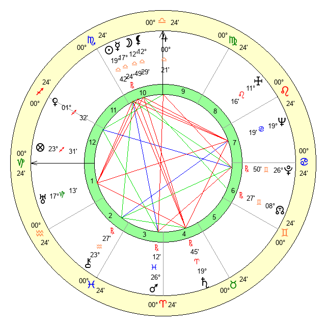 | Jupiter | 0 Libra 11 | 23 Cancer 49 | 14 Libra 12 |