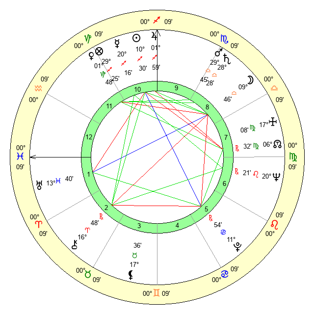 | Saturn | 29 Libra 2 | 25 Pisces 5 | 2 Scorpio 5 |