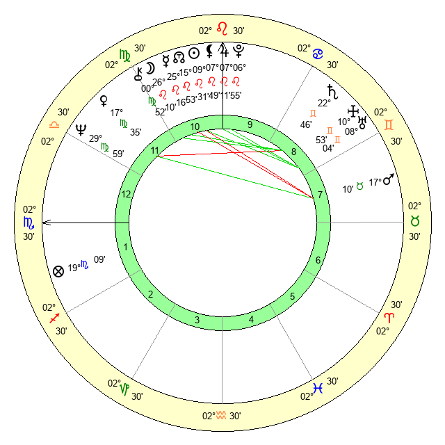 | Moon | 26 Leo 14 | 23 Scorpio 31 | 27 Leo 58 |