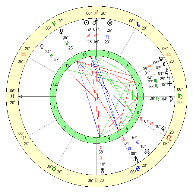 | Neptune | 6 Libra 9 | 29 Pisces 22 | 5 Libra 49 |