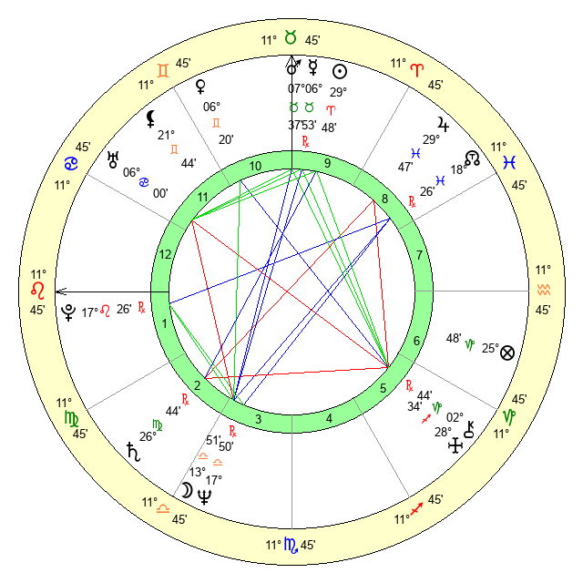 | Neptune | 17 Libra 50 | 0 Aries 45 | 16 Libra 45 |