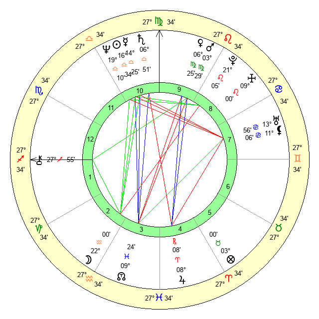 | Mars | 3 Virgo 30 | 12 Scorpio 31 | 16 Libra 19 |