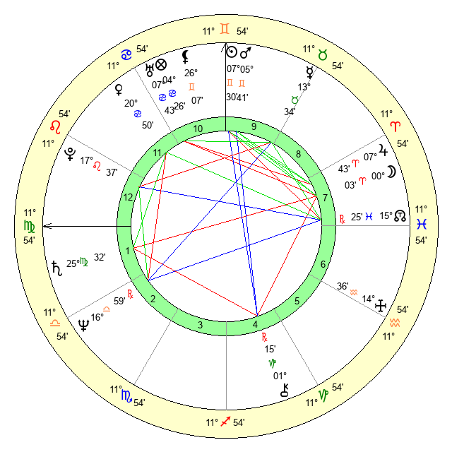 | Venus | 20 Cancer 50 | 22 Aries 45 | 18 Virgo 16 |