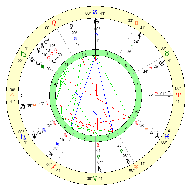 | Sun | 0 Cancer 31 | 1 Cancer 31 | 3 Virgo 40 |