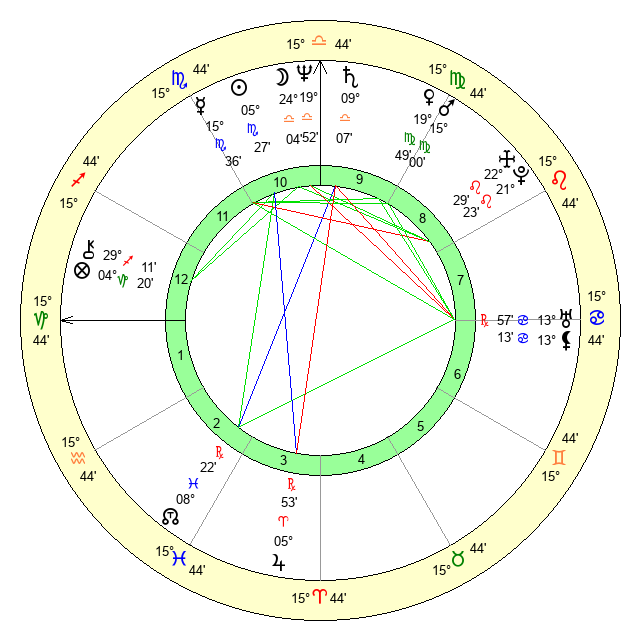 | Saturn | 9 Libra 36 | 25 Pisces 48 | 15 Libra 20 |