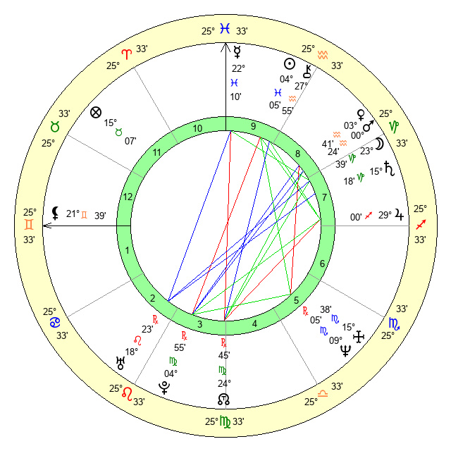| Moon | 23 Capricorn 47 | 9 Capricorn 27 | 9 Gemini 51 |