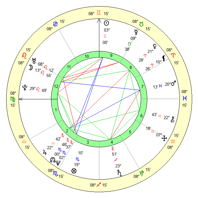 | Jupiter | 22 Libra 33 | 26 Gemini 23 | 24 Libra 5 |