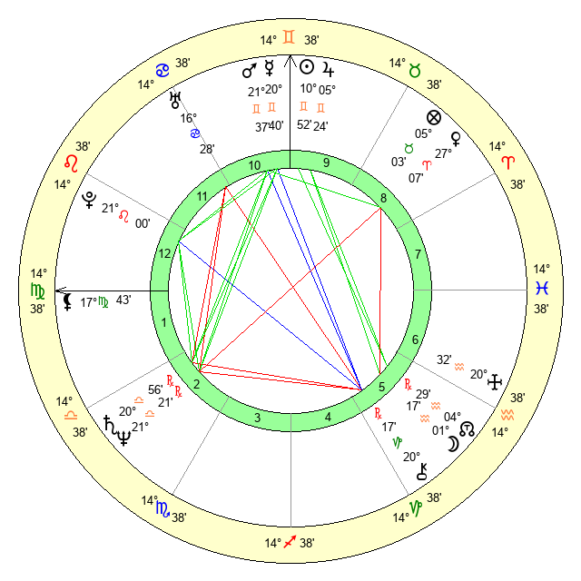 | Sun | 10 Gemini 53 | 11 Gemini 27 | 19 Leo 40 |