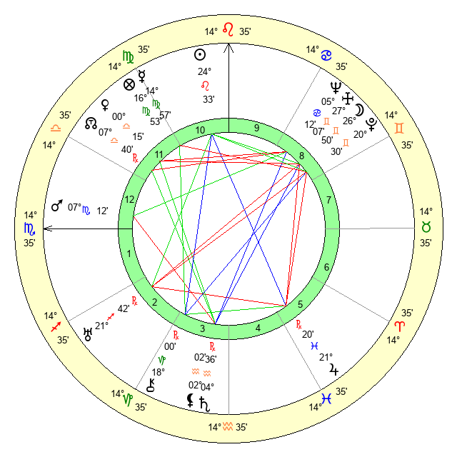 | Mercury | 14 Virgo 58 | 7 Leo 28 | 10 Capricorn 21 |