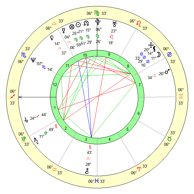 | Venus | 14 Libra 38 | 24 Leo 7 | 4 Capricorn 2 |