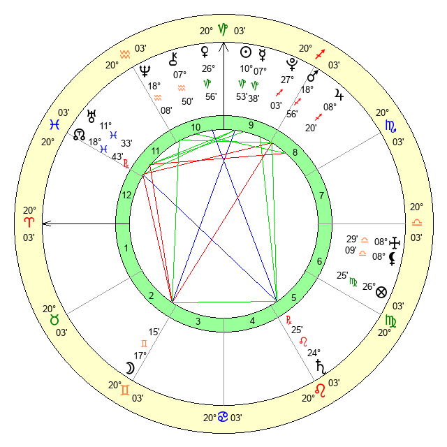 | Moon | 17 Gemini 19 | 3 Aquarius 26 | 6 Aquarius 12 |