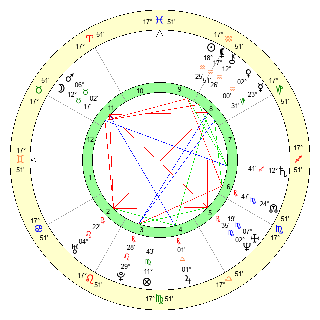 | Jupiter | 0 Libra 51 | 11 Gemini 17 | 23 Virgo 13 |