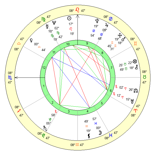 | Neptune | 2 Virgo 43 | 1 Aries 49 | 5 Virgo 37 |