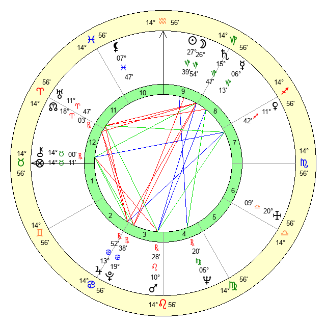 | Moon | 26 Capricorn 49 | 24 Virgo 40 | 25 Gemini 50 |