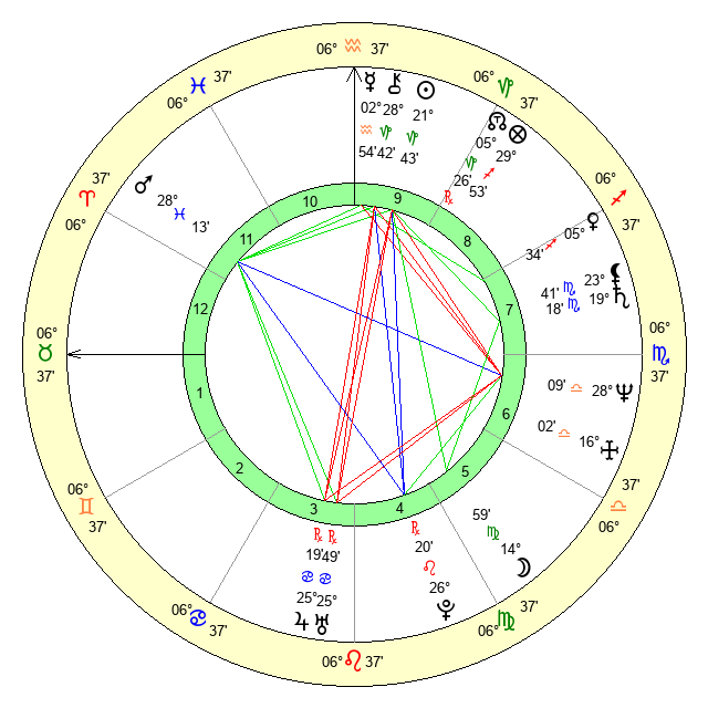 | Saturn | 19 Scorpio 46 | 15 Pisces 26 | 21 Scorpio 16 |