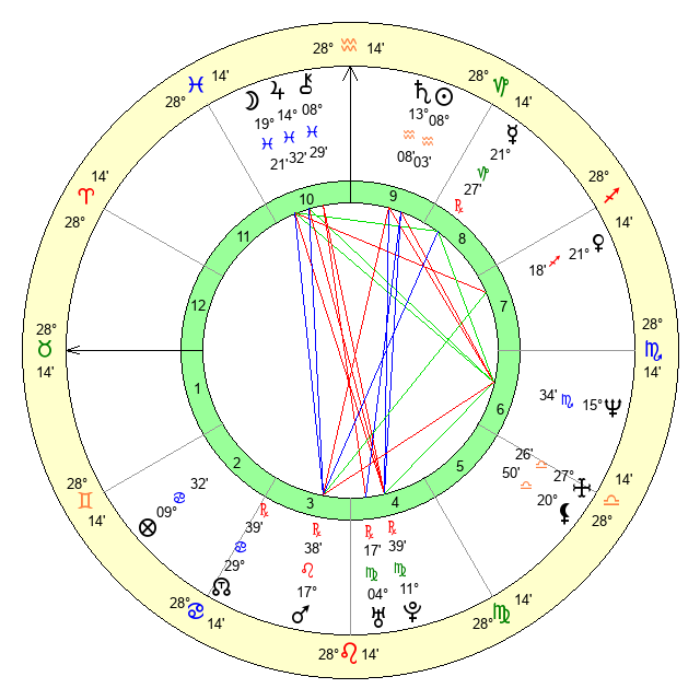 | Jupiter | 14 Pisces 23 | 11 Gemini 21 | 29 Pisces 2 |