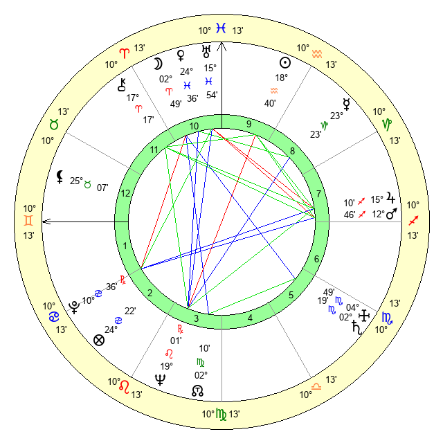 | Saturn | 2 Scorpio 56 | 18 Pisces 13 | 27 Libra 32 |