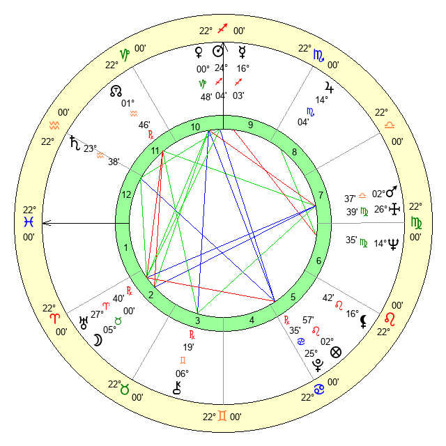 | Neptune | 14 Virgo 34 | 27 Pisces 8 | 12 Virgo 52 |