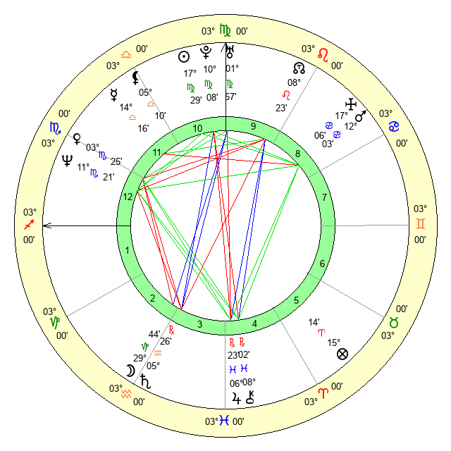 | Neptune | 11 Scorpio 20 | 1 Aries 5 | 13 Scorpio 27 |