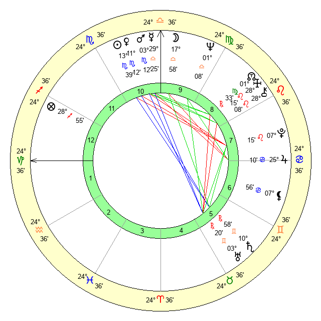 | Neptune | 1 Libra 10 | 29 Pisces 40 | 1 Libra 54 |