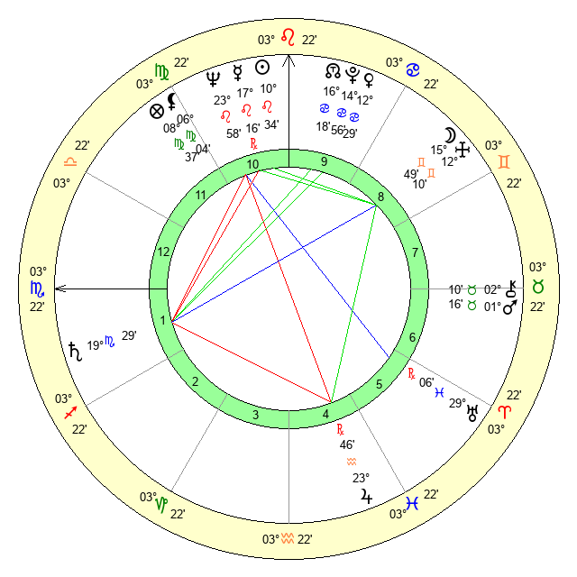 | Mercury | 17 Leo 16 | 7 Leo 4 | 9 Sagittarius 47 |