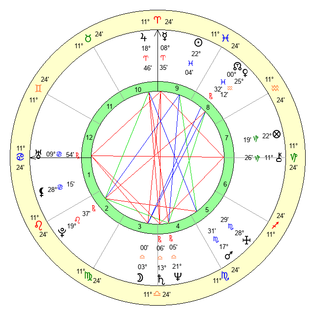 | Moon | 3 Libra 5 | 4 Virgo 33 | 13 Gemini 49 |