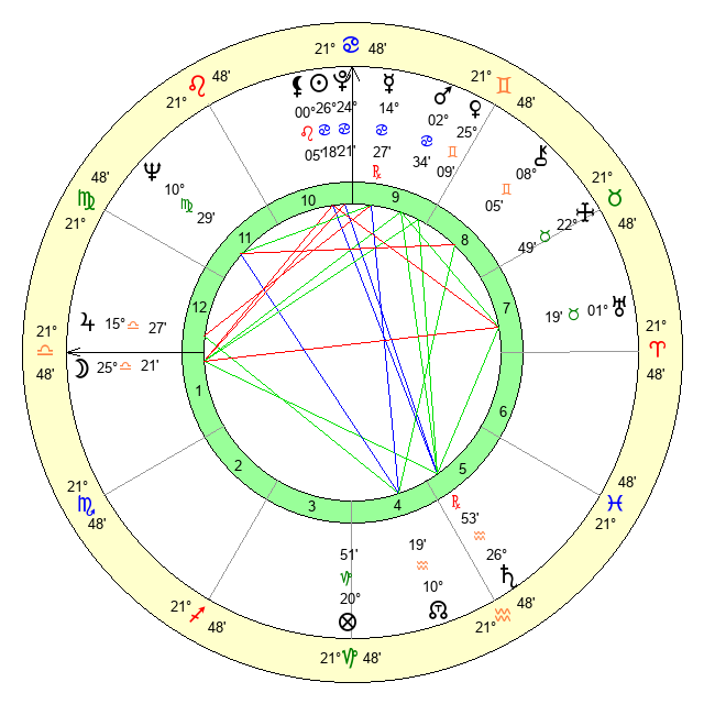 | Moon | 25 Libra 14 | 19 Taurus 31 | 2 Pisces 55 |