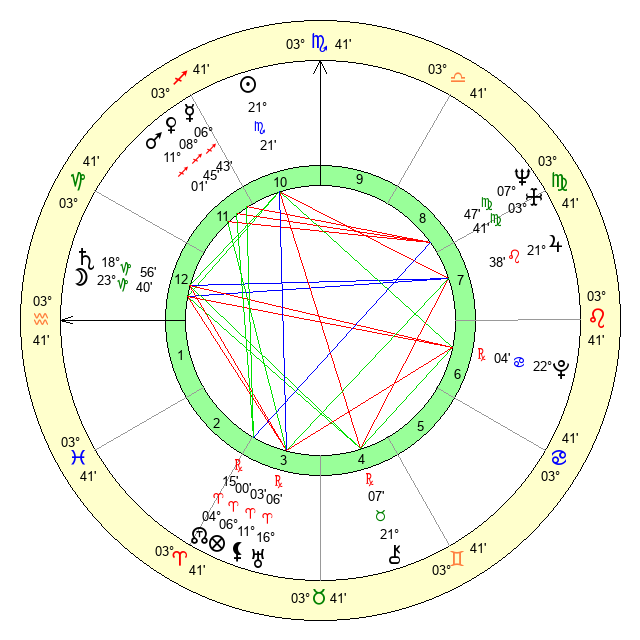 | Moon | 23 Capricorn 47 | 21 Virgo 26 | 18 Gemini 41 |
