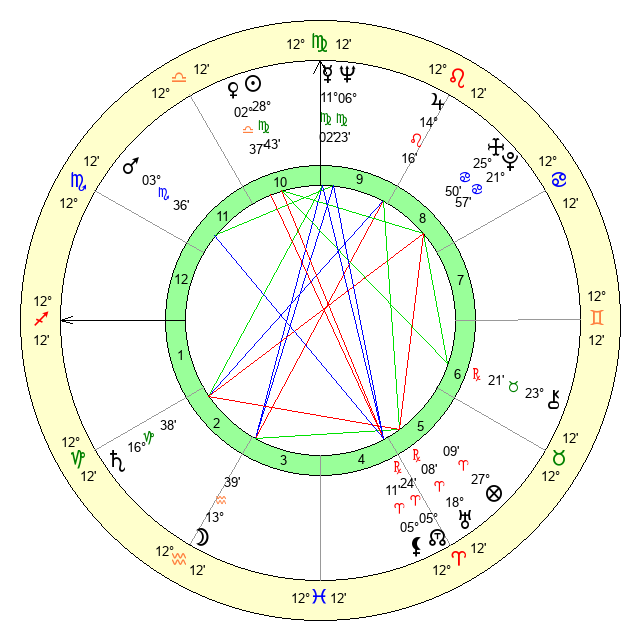 | Neptune | 6 Virgo 24 | 0 Aries 46 | 7 Virgo 55 |