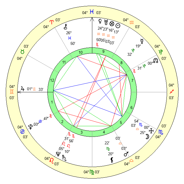 | Venus | 24 Aquarius 51 | 28 Pisces 46 | 14 Aries 56 |