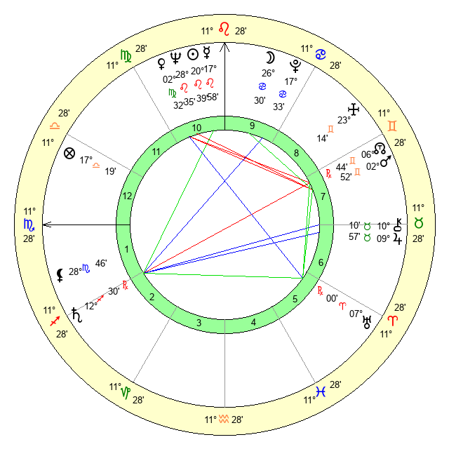 | Sun | 20 Leo 40 | 21 Leo 12 | 26 Scorpio 8 |