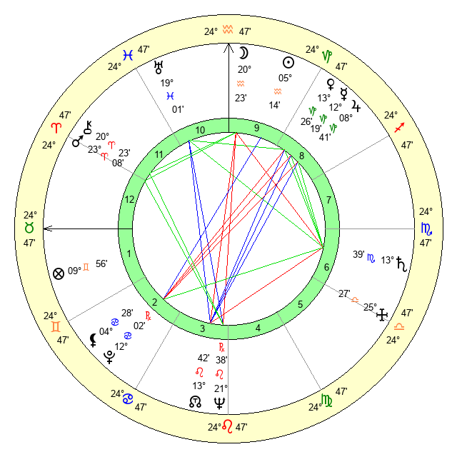 | Saturn | 14 Scorpio 12 | 16 Pisces 41 | 11 Scorpio 19 |