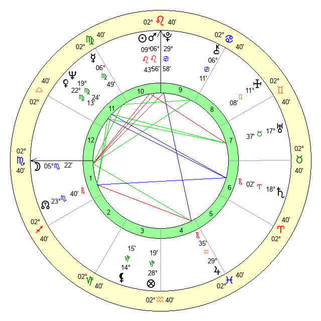 | Neptune | 19 Virgo 24 | 1 Aries 57 | 22 Virgo 25 |