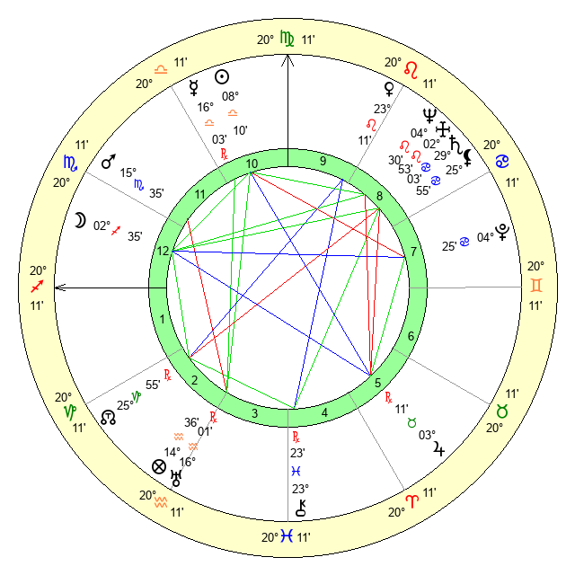 | Mars | 15 Scorpio 35 | 6 Scorpio 21 | 7 Aquarius 12 |