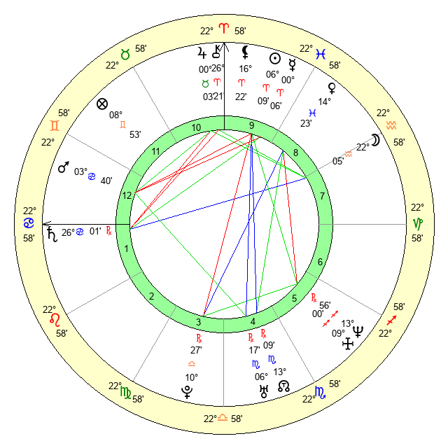 | Sun | 6 Aries 10 | 6 Aries 17 | 24 Taurus 0 |