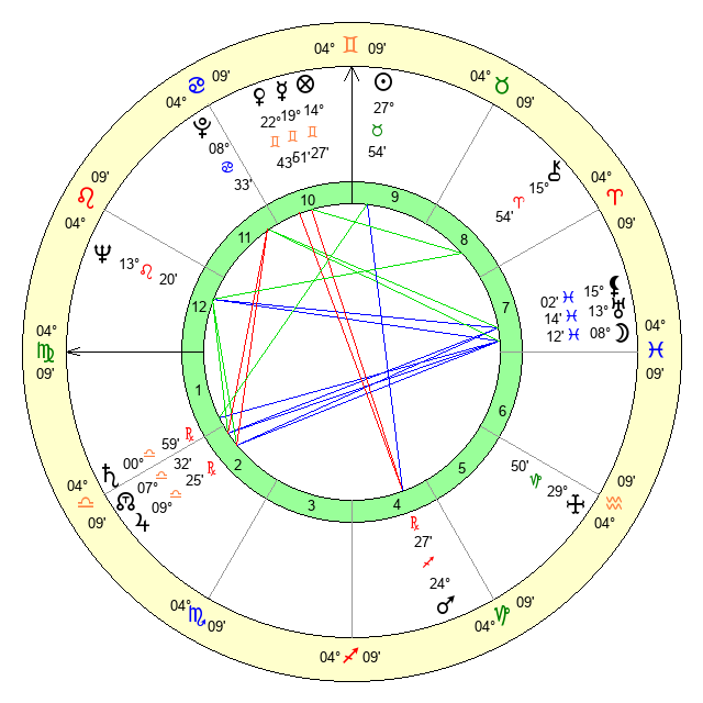 | Jupiter | 9 Libra 7 | 25 Gemini 17 | 17 Libra 54 |