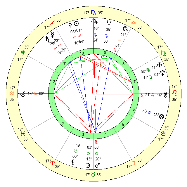 | Moon | 13 Taurus 6 | 21 Capricorn 15 | 25 Libra 46 |