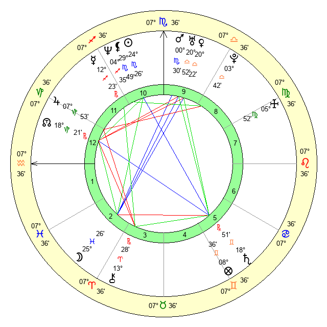 | Venus | 20 Libra 22 | 12 Scorpio 14 | 26 Sagittarius 7 |