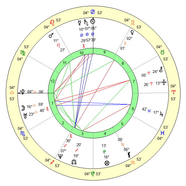 | Moon | 17 Libra 5 | 6 Leo 16 | 23 Leo 11 |