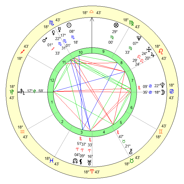 | Venus | 22 Scorpio 32 | 23 Libra 27 | 19 Pisces 7 |