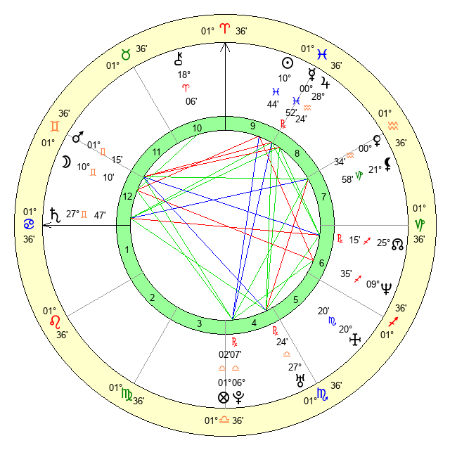 | Moon | 10 Gemini 18 | 4 Aries 18 | 22 Aries 12 |