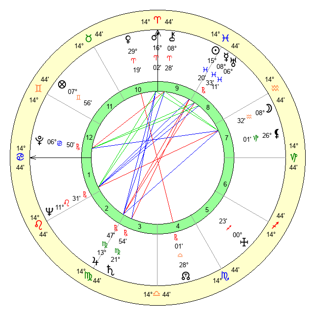 | Mars | 16 Aries 2 | 17 Cancer 39 | 29 Gemini 44 |