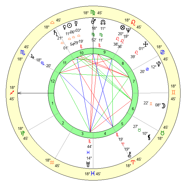 | Mars | 18 Virgo 52 | 5 Scorpio 40 | 24 Scorpio 10 |