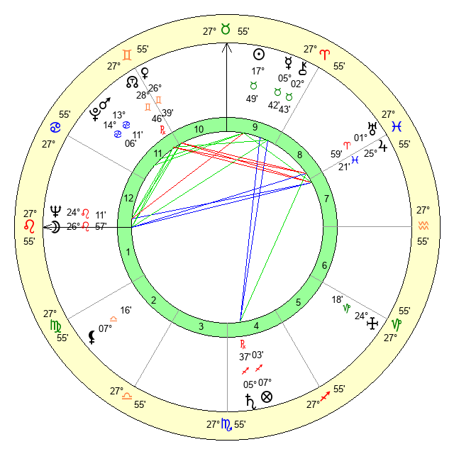 | Moon | 26 Leo 59 | 13 Libra 42 | 22 Pisces 31 |
