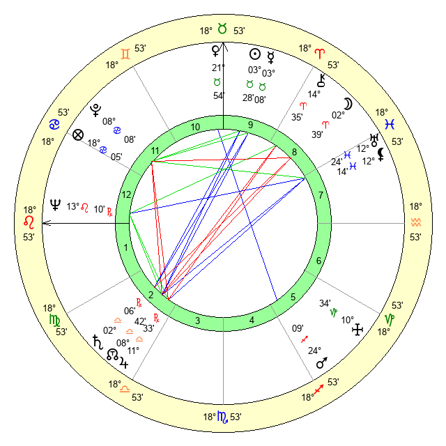 | Neptune | 13 Leo 9 | 0 Aries 53 | 15 Leo 33 |