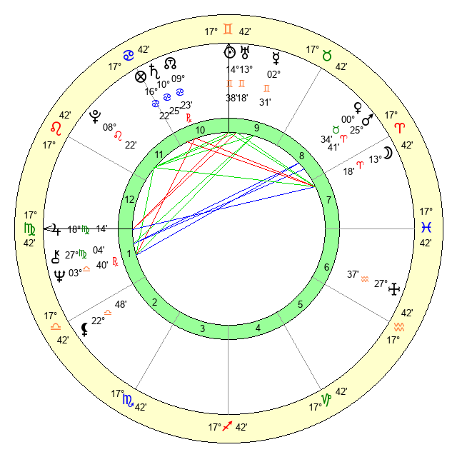 | Sun | 14 Gemini 39 | 15 Gemini 17 | 1 Virgo 9 |