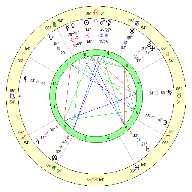 | Mercury | 29 Leo 34 | 4 Leo 56 | 3 Scorpio 43 |