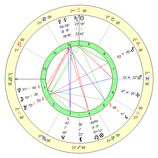 | Moon | 10 Libra 32 | 1 Sagittarius 2 | 4 Virgo 28 |