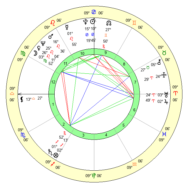 | Moon | 3 Virgo 57 | 21 Libra 52 | 28 Pisces 31 |