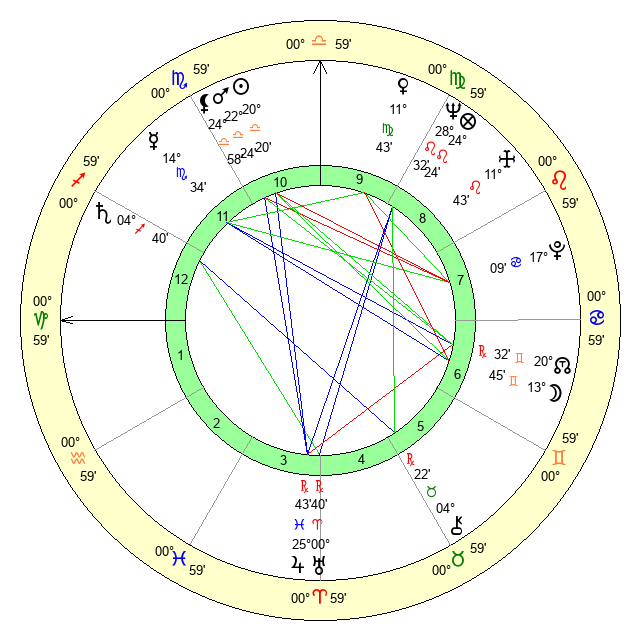 | Mars | 22 Libra 25 | 15 Scorpio 18 | 1 Capricorn 12 |